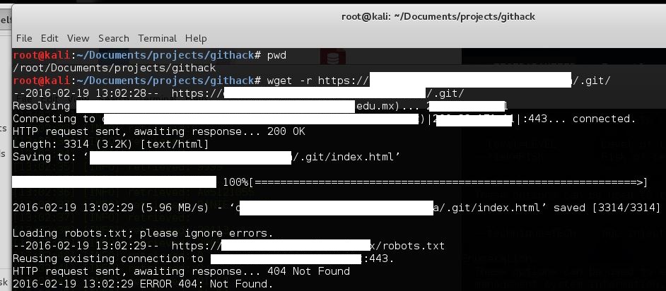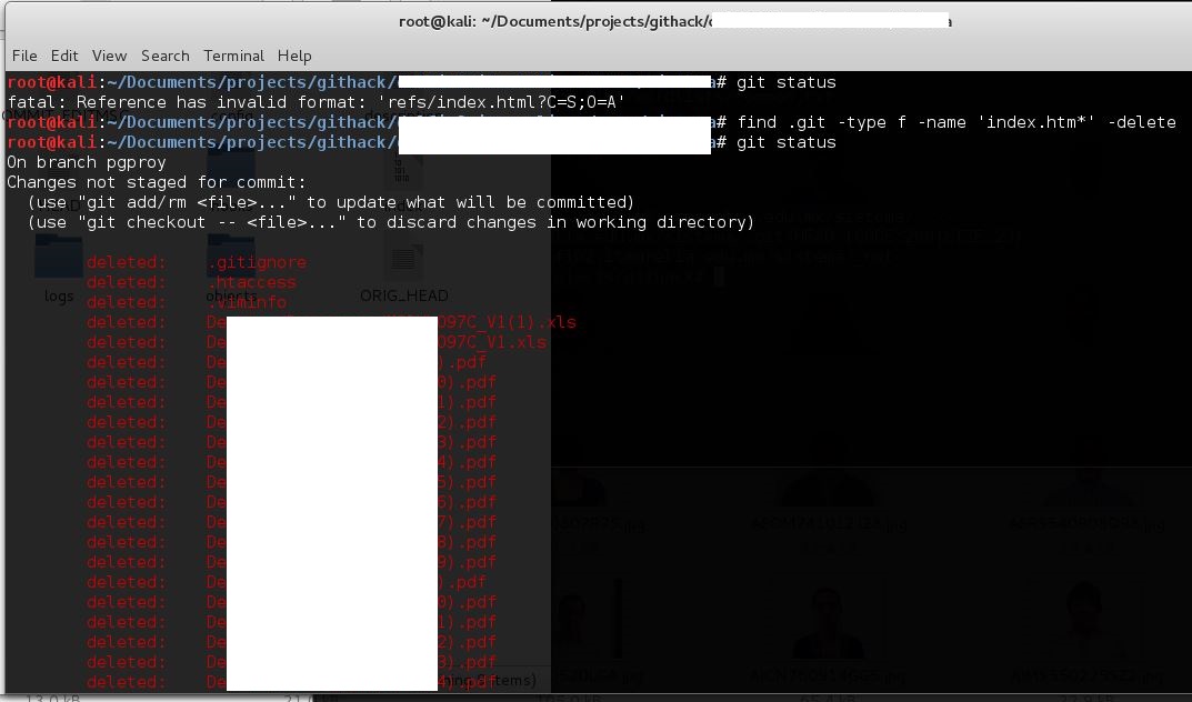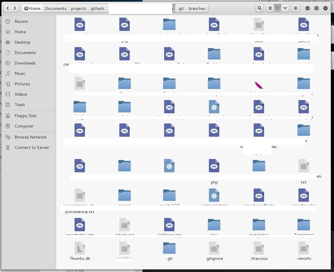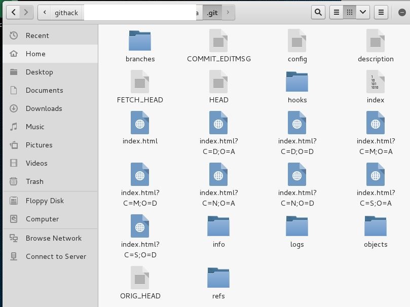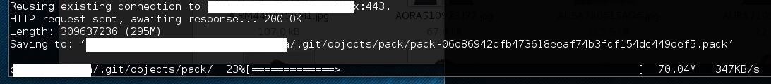 While wget is running, something interesting can be observed. The repository contains ".pack" files of several megabytes in size. Pack files, in simple terms, are data structures which contain hashed versions of the source-code with references, indexes and other meta data. More information about pack files can be found at https://schacon.github.io/gitbook/7_the_packfile.html.