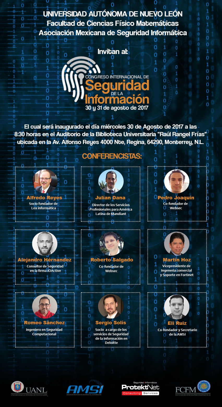 Websec will participate in the 2nd International Computer Security Congress organized by the Faculty of Mathematical Physics and the Mexican Association of Computer Security. The conference will begin on Wednesday, August 30, 2017 at 8:30 am in the Auditorium of the University Library "Raúl Rangel Frías" located at Ave. Alfonso Reyres 4000.